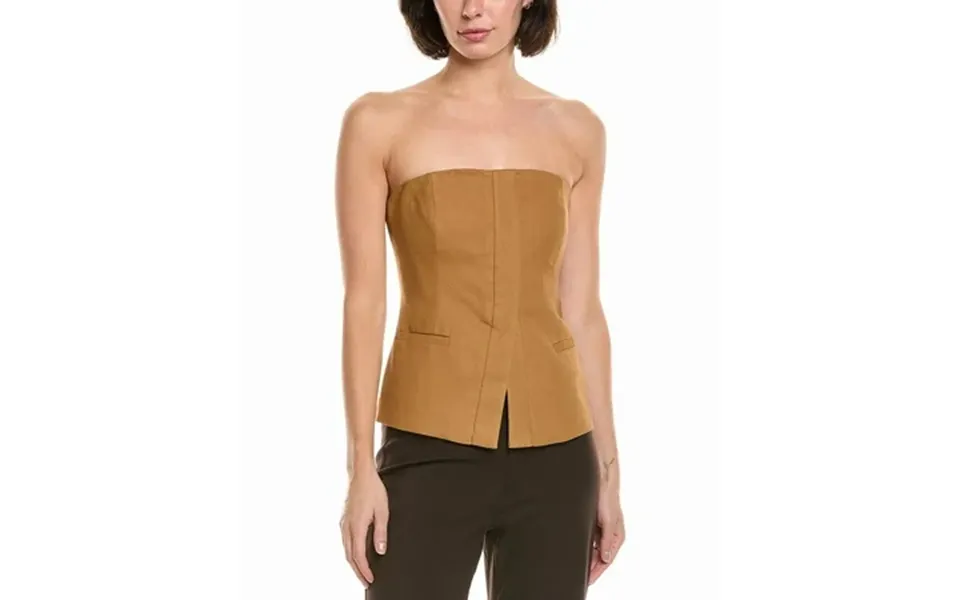 About the brand: bold modern and wearable style. Renee linen-blend bustier top in copper with two front pockets approximately 15.5In from shoulder to hem left...show more