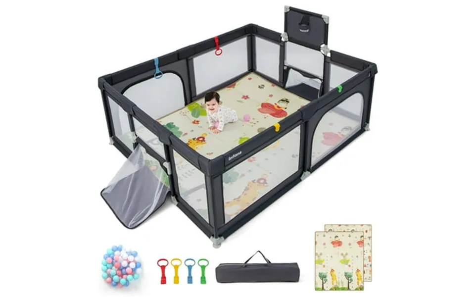 Olakids Baby Playpen 74 X 62 Extra Large Baby Play Yard With Crawling Mat 50 Ocean Balls 4 Pill Up Rings Basketball Hoop