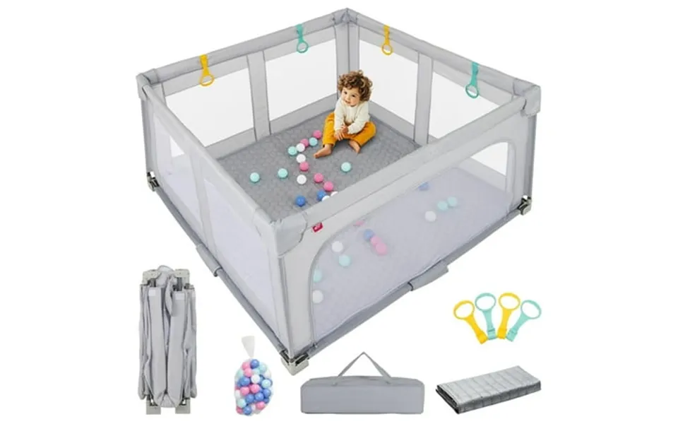 Why do you choose olakids baby playpen olakids foldable baby playpen allows you to take care of your children while working and doing chores at home making your life easier and more enjoyable. This toddler playpen comes with 50 ocean balls 4 pull-up hoops and play mat for your baby to practice walking and standing while having fun. At the same time you do not have to worry about the safety of the material the baby play area made of safe and non-toxic fabric solid connection with thickened fabric wrap to protect the safety of the baby. The visual 4-sided design allows parents to monitor baby s activities. The baby won t get out easily because of the 30-inch height and the external zipper door. This portable design is a great option if you want to take your baby outside features: the 360 visible mesh design ensures constant supervision for your baby made of non-toxic oxford net and sturdy steel pipes 4 pull-up rings help the little one to stand and walk the external gate zipper only allows to open from outsides 50 ocean balls increase play-ability simple installation without tools non-slip pads enhance the stability of the playpen the product can be folded into a handbag and carried out mat can be machine washed to ensure a clean environment perfect for indoor and outdoor activities specification: color: black gray net weight: 16.5 Lbs material: metal mesh oxford cloth dimension of arch door: 47 x 21.5 L x w dimension of mat: 58 x 58 l x w product dimension: 59 x 59 x 30 l ...