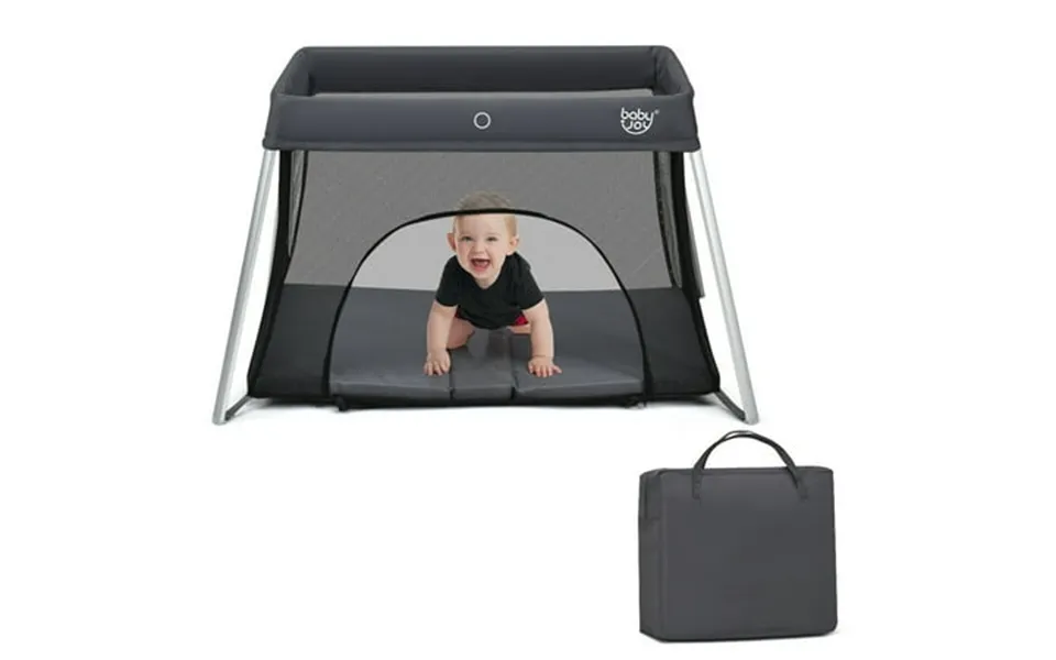 Description: our baby playpen can give your baby a nice place to sleep and play with lightweight and foldable design our travel crib is free of installation and can fold quickly saving you a lot of space and time. With a carrying bag it s very easy to carry and store and you can take it wherever you want. The breathable full-height mesh design not only facilitates air circulation but also helps you monitor your baby s every move at any time. The soft mattress with a thick sponge will make your baby sleep more comfortable. And the mattress cover and all the crib fabrics are detachable and washable. The side of the crib has a zipper door which facilitates the baby s entry and exit. Let your baby have a comfortable sleeping and playing space features: it is a multi-functional travel crib for baby sleeping and playing installation-free and foldable design saves you time and energy equipped with a portable bag easy to carry and store specification: color: dark gray material: aluminum tubes foot iron tubes handrail mesh cloth overall size: 45.5 X 31 x 27 l x w x h mattress size: 39.5 X 24 x 1.5 L x w x h side zipper door size: 25 x 16.5 L x w carrying bag size: 23.5 X 7 x 20.5 L x w x h net weight: 11lbs weight capacity: 33lbs applicable age: 0-3 years old