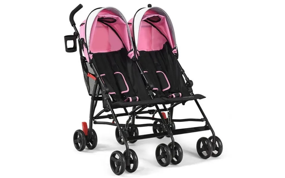 This stroller with the functionality of quick and easy umbrella fold is a must-have for parents who travel or go out often. This double side by side stroller will be of great use if you have two kids or twins. It is ideal for babies weighing up to 33 pounds. Ventilate canopy with two small windows for blocking ultraviolet and lightweight frame is friendly for travel. 360-Degree swivel wheels is shock absorbing designed and 5-point safety harness ensures security for your little baby feature adjustable backrest in three different positions brake unit of rear wheel for safe travel ventilate canopy with two small windows for blocking ultraviolet lightweight frame for easy travel easy fold quick and compact umbrella fold for portability and easy travel 2 large back storage bags and 2 bottom large carrying basket 5-point safety harness 360-degree swivel shock absorbing front wheels with cup holder specification color:pink material:steel frame product dimension:31 l x 28.5 W x 37 h product weight:18 lbs maximum weight for each seat:33lbs suitable age:7-36 months under 38 tall