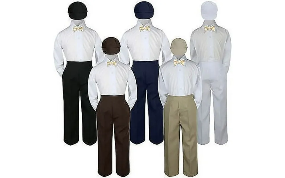 100% Brand new 4 pieces satin color vest suit setincluding in this listing:shirtpantsbow tiehatfeatures:5 color collectionthe long white shirt is made out 35% cotton 65% polyester fabric.The color coordinated pants a hidden fly zipper in the front belt loops and an adjustable elastic waistband in the interior of waist. There are angled pockets on each side of the pants and two buttoned welt pockets on the back. Note: baby and toddler sized s m l xl 2t 3t 4t pants do not have a fly zipper and belt loops only an elastic waistband.A color coordinated satin bow tie is included.Hat is also included.Our store carries the same style with the following color please click each picture to the color you prefer.Colors: green teal navy mustard champagne coral brown ivory eggplant dark gray gold yellow red black white silver royal blue purple lilac turquoise fuchsia burgundy orange lime and others.Brownburgundycoraldark grayeggplantfuchsiagoldgree