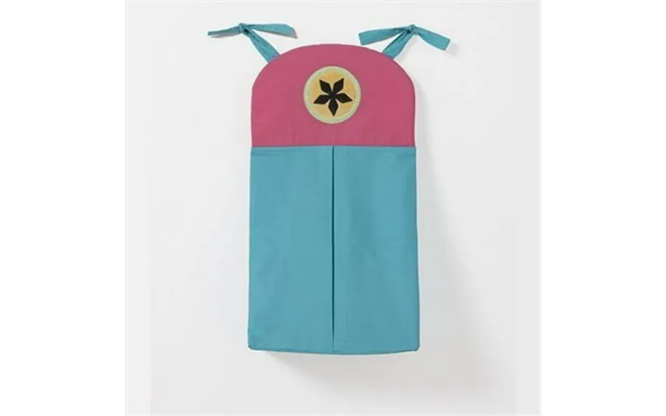 Magical michayla s diaper stacker designed in solid pink and turquoise cotton fabric with appliqu kaleidoscope pattern on front. Hang made easy with ties located...show more