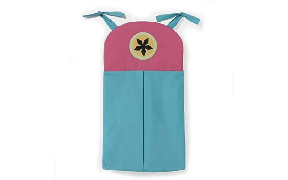 Magical michayla s diaper stacker designed in solid pink and turquoise cotton fabric with appliqu kaleidoscope pattern on front. Hang made easy with ties located...show more