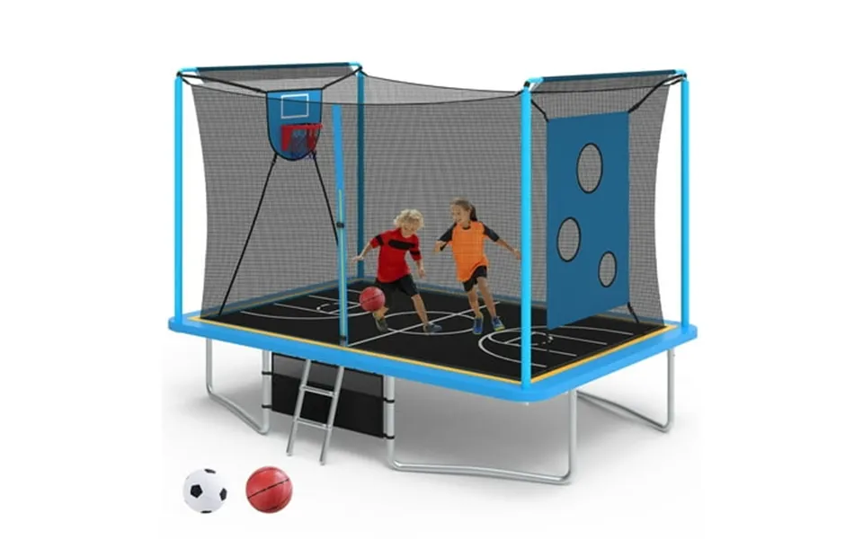 Segmart upgraded rectangular trampoline brings a joyful outdoor activity for your kids creating energizing and enlivening childhood memories. Extra-ordinary trampoline fun makes children self-directed to get into innovative work and limit their screen time leading to frequent parent-child interaction and spending quality time together. Safety always comes first rectangular trampoline has been tested for safety and comply with certify standard. We have a unique design that leaves enough space between the pole on the trampoline and the enclosure net to avoid kids from colliding when they fall. Besides there is no gap between the net and the jumping mat which minimizes the risk of foot clipping during bouncing. 20 000 Tensile tests 8ft x 12ft trampolines with more than 20 000 tensile tests ensures that the trampoline can bring enough elasticity and ensure the safety of the trampoline. This is repeatedly emphasized safe safe and safe rectangular trampoline frame is made of 1.5Mm hot-dip galvanized steel which is 5 times solid than ordinary galvanizing and fully sprayed for 100% anti-rust and anti-corrosion. 1600Lbs load capacity our 8ft x 12ft trampoline for family has been tested with 20 000 hrs and can hold up to 1600lbs single person weight capacity up to 400lbs. 4 W-shaped legs and a unique 4 balance bar design provide double stability to the trampoline. This structural design makes the trampoline more evenly loaded and effectively prevents the trampoline bars from bendin...