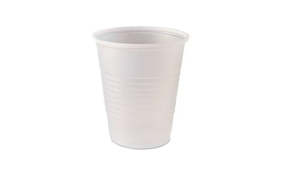 Lightweight plastic cups feature attractive strength-enhancing sidewall ribbing. Embossed capacity marks enable quick accurate and consistent fountain filling. Printable surface provides opportunities for custom branding and fill identification. High-quality polystyrene construction eliminates the potential for flavor and odor transfer. Smooth-rolled rims accommodate lid-free sipping. Leak-resistant snap-tight lids sold separately unless otherwise noted . Horizontal sidewall ribbing. Cup type: cold capacity volume : 5 oz material s : polystyrene color s : clear. Post-consumer recycled content percent: 0%. Pre-consumer recycled content percent: 0%. Package includes: includes 25 sleeves of 100 cups each.