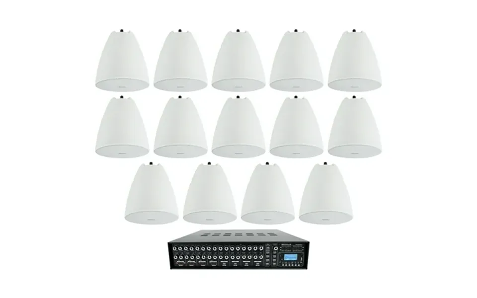 Package includes: 1 rockville rock matrix 4 zone 70 volt commercial amplifier matrix source routing 14 rockville pen-65t white 6.5 70V hanging pendant speaker commercial restaurant description of rock matrix 4: multi source multi zone matrix routing the rock matrix 4 is a 4 zone commercial amplifier that allows you to route any source to a specific zone s and also route any microphone input to a specific zone s . Features of rock matrix 4: rockville rock matrix 4 zone 70 volt commercial amplifier 440 watts total rms less than 1 % thd 110 watts rms per zone x 4 zones route any sources to any zones 4 separate zone output and you can route any source to any zone and also route a microphone input to specific zone s supports multi zone installations using 70 volt 100 volt 16 ohm 8 ohm and 4 ohm speaker set ups 4 line mic inputs 2 of the mic inputs have selectable phantom power for condenser mics 19 rack mountable removable rack brackets built in 1w monitor speaker allows you to listen to playback on any zone 100 volt rms power: 4 x 110 watts rms 70 volt rms power: 4 x 110 watts rms 4 ohm rms power: 4 x 110 watts rms 8 ohm rms power: 4 x 110 watts rms 16 ohm rms power: 4 x 110 watts rms built in bluetooth 5.0 Chip allows audio streaming with matrix assigning to any zone s usb input to play audio stored on a thumb drive with matrix assigning to any zone s 32gb max sd card slot to play music stored on an sd card with matrix assigning to any zone s 32gb max separate volume control...