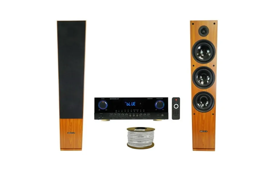 Package includes: 1 rockville singmix 5 2000w bluetooth dj pro karaoke home amplifier mixer receiver 2 rockville rocktower 68c classic home audio tower speaker passive 8 ohm 1 rockville red 14g50 ofc 14 gauge 50 foot 100% copper speaker wire car audio how to set up your singmix 5: video of singmix 5: inputs and outputs: front: 3 mic inputs additional 2 mic inputs on the rear front: usb sd inputs built-in bluetooth fm radio rear: 2 rca inputs rear: 2 mic inputs there are also 3 mic inputs on the front optical input coaxial input rca outputs 1 master line out and one mic out speaker outputs supports 4 speaker or 2 speaker setups banana or bare wire features: rockville singmix 5 2000 watt bluetooth amplifier mixer receiver speaker outputs supports 4 8 ohm speakers or 2 8 ohm speakers or 2 4 ohm speakers terminals are banana or bare wire a and b speaker selector options allows you to split the speakers to 2 zones and turn each zone on or off. When both zones are playing it will play in stereo built in bluetooth with 35 foot range usb input will play music files from a thumb drive or hard drive sd card playback will play music files stored on a memory card precision tuning with metal knobs owner s manual how to set up your rocktower speakers: features: rockville rocktower 68c classic wood color home audio tower speaker rms power: 125 watts peak power: 500 watts woofer: 6.5 X 2 midrange: 6.5 X 1 tweeter: 1 silk dome tweeter each woofer has a 15 oz magnet and 1.25 Voice coil mid...