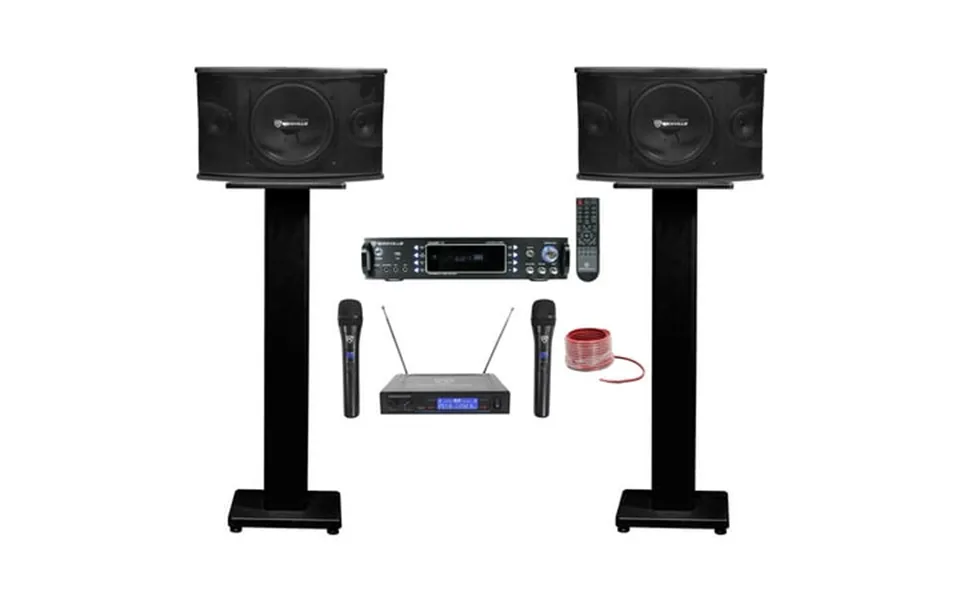 Package includes: 1 pair rockville kps10 10 3-way 1200 watt karaoke speakers wall brackets mdf 1 rockville rpa60bt 19 1000w 2-ch usb bluetooth dj pro karaoke amplifier mixer 1 pair rockville rhtsb 36 inch bookshelf speaker stands surround sound home theater 1 rockville rwm1203vh vhf wireless dual handheld microphone system digital display 1 rockville red 14g50 ofc 14 gauge 50 foot 100% copper speaker wire car audio video of youtube karaoke: video of kps series speakers: features of rpa60bt:rockville rpa60bt 19 1000 watt 2-channel usb and bluetooth karaoke receiver amplifier mixer19 rack mountable removable rack brackets digital hybrid amplifier receiverrms power 4 ohms: 125w x 2peak power 4 ohms: 500w x 2rms power 8 ohms: 100w x 2peak power 8 ohms: 400w x 2thd: 0.1%Input sensitivity: 400mv 33 kohmfrequency response: 20 hz