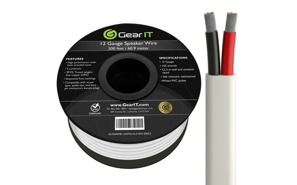 Ofc oxygen-free copper white 200ft Gearit 12 2 marine wire 200 feet 12awg gauge Tinned ofc copper marine grade speaker cable duplex 2 conductors ...show more