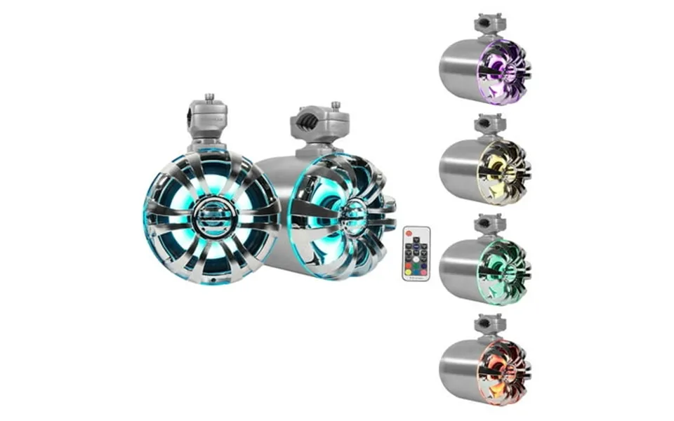 Video of wb65kled: what s included: pair 6.5 Marine wakeboard tower speakers with built in led s waterproof leading wire mounting brackets and mounting hardware abs chrome grill installation hardware wiring instructions the wb65kled 2-way marine wakeboard tower speakers with built in led s by rockville are the newest addition to the rockville marine audio lineup. These speakers are both sleek and durable. You get a pair of 6.5 Waterproof speakers in a stainless steel enclosure with a chrome grill finish. Each speaker is equipped with a 1 titanium dome tweeter and a 6.5 Long excursion woofer. Each speaker can handle 150 watts rms and 300 watts peak the built in blue led s are both reliable and look great they really complete the sleek look of these speakers. Adding these tower speakers to either your boat jeep or utv will surely enhance the look of your ride rockville engineers care about quality and sound more than anything else. The wb65kled was designed with good looks and durability in mind. The grill is constructed from abs and is painted in chrome for an amazing finish. The 1 titanium dome tweeters really make the sound of these speakers stand out. The highs on these speakers are crisp clear and extremely loud the long excursion woofer is both reliable and sounds great. The material used on these woofers are the same materials used on most of the top speakers on the market. We use rubber surrounds on these to eliminate unwanted distortion. In addition rubber is an ex...