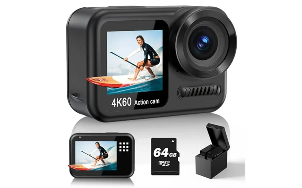 A 1.5 Front display for self-framing and a responsive 2 rear touchscreen for precise control. Designed for durability and portability this compact sports camera withstands the rigors of extreme activities while delivering professional-quality footage. Advanced waterproof technology 65ft 20m engineered with ip68 waterproof certification this underwater camera operates at depths reaching 65 feet without additional housing. Two high-capacity 1350mah batteries provide extended runtime making it perfect for aquatic sports including scuba diving paddleboarding and marine exploration. Smart wireless connectivity & image stabilization seamlessly transfer media via 2.4Ghz wifi to the live dv mobile application ios android compatible . Note: media must first be downloaded to your smartphone before sharing. Advanced electronic image stabilization eis technology compensates for motion during vigorous activities ensuring steady professional-grade video output. Professional shooting modes & comprehensive ...