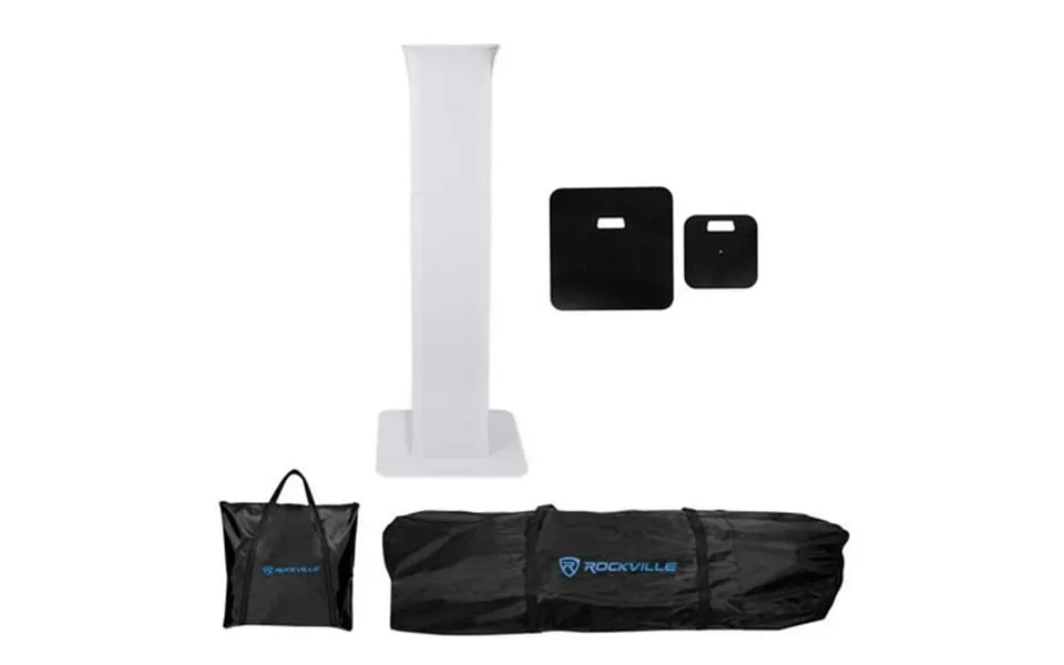 Package includes: 1 rockville rtp32w totem moving head light stand black white scrims carry bags 1 rockville top bottom black totem plates to make rtp32w rtp82w into blackstands video of rtp32w: what s in the box: 1 podium stand 1 white scrim 1 black scrim 1 bag for main frames base and top support legs 1 bag for top plate and base plate 1 35mm pole mount adaptor non-slip foam eva pads 1 8mm thumb bolt and washer pack warranty card owner s manual features: rockville rtp32w totem pole moving head light stand black white scrims carry bag perfect for lights speakers monitors etc. Adjustable height from 39 inches to 68.8 Inches requires no tools for assembly and can be assembled within a couple minutes designed for maximum stability even at its top height of 69 inches includes 2 sets of scrims black and white includes 2 travel bags for easy transporting includes 35mm pole mount speaker adapter for mounting speakers non-slip foam eva pads can be attached to the top plate velcro cable ties included for neat cable management unique spring loaded turn and lock mechanism for easy height adjustment base and top plate have integrated transport handles includes frame support bars to assist with stability includes 8mm quick release thumb screws and bolts for easy assembly color: white steel construction base plate w x d x h : 19.6 X 19.6 X 0.11 Inches top plate w x d x h : 11.8 X 11.8 X 0.11 Inches pole mount speaker adapter length: 4 7 8 unit dimensions for transport w x d x h : 19.6...