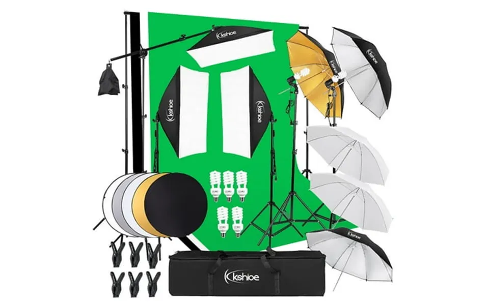 Introductions: thank you for visiting our site we are glad to give you a recommendation of this baytocare pk002 soft light box soft umbrella plus five-in-one reflector set.It costs less is easy to use fit all the application such as movies special effects and photography portable and foldable to soak up all the light without reflective. And it is perfect for holder your photo umbrellas slave flash or light bulbs. This product is easy to assemble and saves time works well to diffuse the light from any flash strobe light and constant light. So what are you waiting for just take it home features: 1. With free outer diffuser cover 2. Made of high quality nylon construction 3. Adjustable light head for perfect light stream to your object 4. And spread light stream evenly 5. Eliminate glare and spots 6. Lightweight and easy to set up 7. Works well to diffuse the light from any flash strobe light and constant light specifications: 1. Dimensions: 33.86 X 11.81 X 9.45 86 X 30 x 24 cm l x w x h 2. Weight: 29.98Lb 13.6Kg 3. Main material: other metal 4. Brand: baytocare package includes: 2 x single lamp head us standard wire 1.8M 2 x 33 inch white umbrella 2 x 33 inch black silver umbrella 1 x 33 inch black gold umbrella 5 x 65w photography light bulbs 3 x 1.6 * 3 Meters non-woven black white green 6 x fish mouth clip black 1 x 2 * 3m background frame 4 section rail 5 x 2m light stand 1 x the whole cloth package 3 x 5070 single lamp softbox 1 x cantilever frame 1 x 60cm 5 in 1 refle...