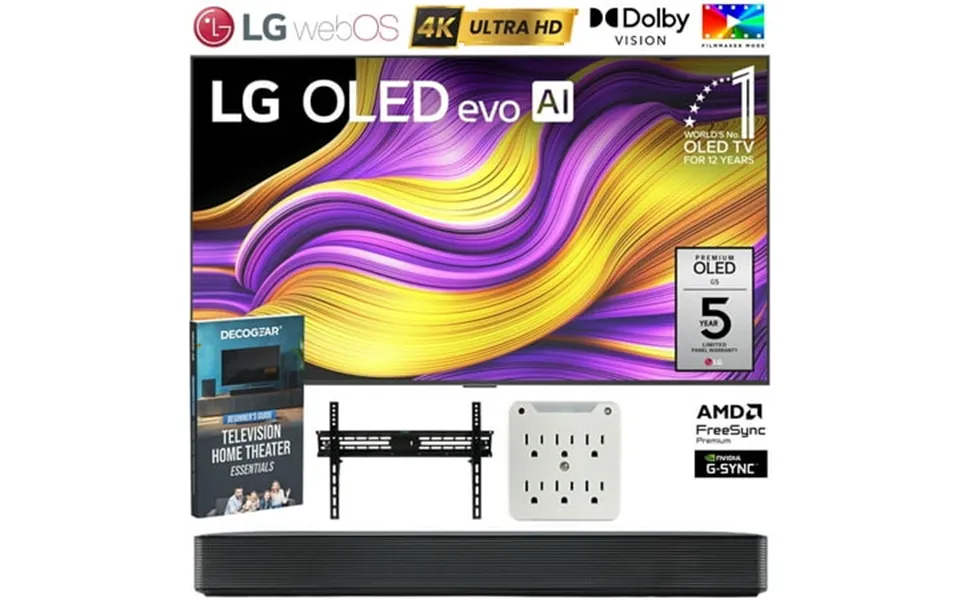 33208 Deco gear television home theater essentials: beginner s guide introducing the all-new lg oled evo g5 with next-gen ai for a smarter personalized experience and spectacular bright-room ready picture. The lg oled evo g5-series is powered by the alpha 11 ai processor gen 2 for even better and more customized picture and performance. Brightness booster ultimate produces up to 45% brighter images for luminous high-contrast picture quality that is both glare and reflection free. All while still delivering perfect black and perfect color powered by 8.3 Million self-lit smart pixels. When you re not watching you can display art photos and other content to blend the lg oled evo g5 into your surroundings. Search less and stream more thanks to the next generation of ai technology from lg webos 25. And with quick cards you can group your favorite apps and use the magic ...