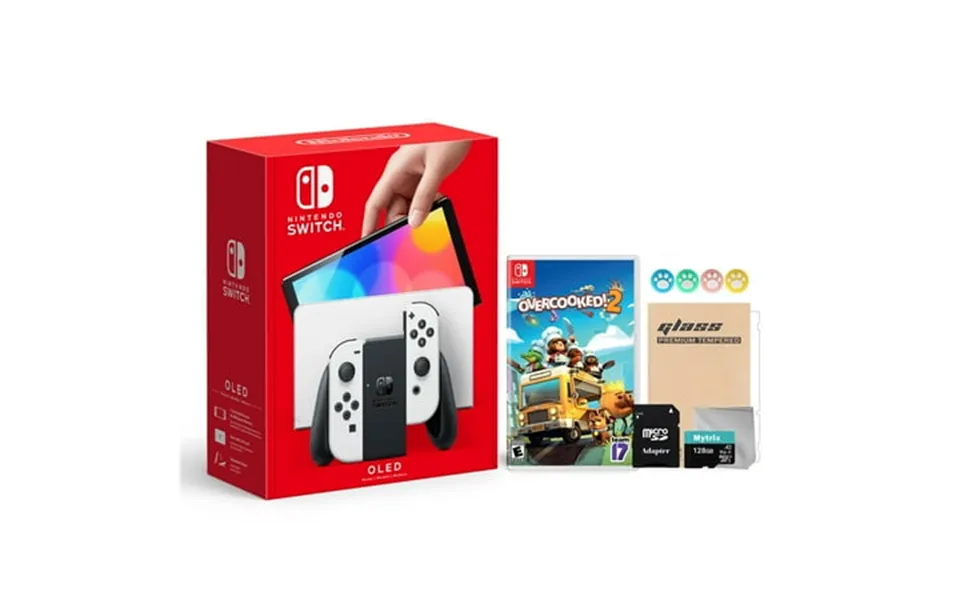 2021 New nintendo switch oled model white joy con 64gb console improved hd screen & lan-port dock with overcooked 2 and mytrix accessories