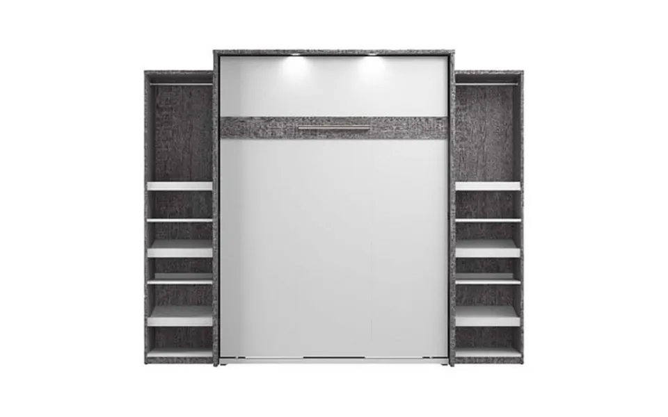 The atlin designs queen murphy bed with 2 narrow closet organizers 105w is the perfect space-saving bed. Dual pistons fold the queen murphy bed down smoothly. The mattress support features flexible slats that absorb pressure for comfort. Wall bed accepts most queen size mattresses. Tall cabinets fixed and adjustable shelves and clothing rods organize materials. The open bed extends 92.7 Inches from the wall. To avoid risk of injury the bed must be installed to the wall and floor structure by a professional or qualified person. Two people are required for assembly. Installation requires attachment to wood studs or masonry removal of the baseboard and drilling into the floor. Necessary hardware is included. Do not use this product for children or pets under 50 pounds 22.7 Kg . North american made with globally sourced materials. Features: materials: engineered wood metal finish: bark gray white do not use this product for children or pets under 50 pounds 22.7 Kg maximum weight supported with mattress is 1000 pounds 453.6 Kg queen size murphy bed accommodates most standard queen mattresses 8-12 inches thick 60-90 lb 60 x 80 inches no futons to let you choose the most comfortable option mattress not included do not use with box spring open storage area includes built-in wire management to accommodate electronics like an alarm clock or phone charging station dual piston system folds the space saving bed up and down smoothly mattress support uses flexible slats that absorb pres...