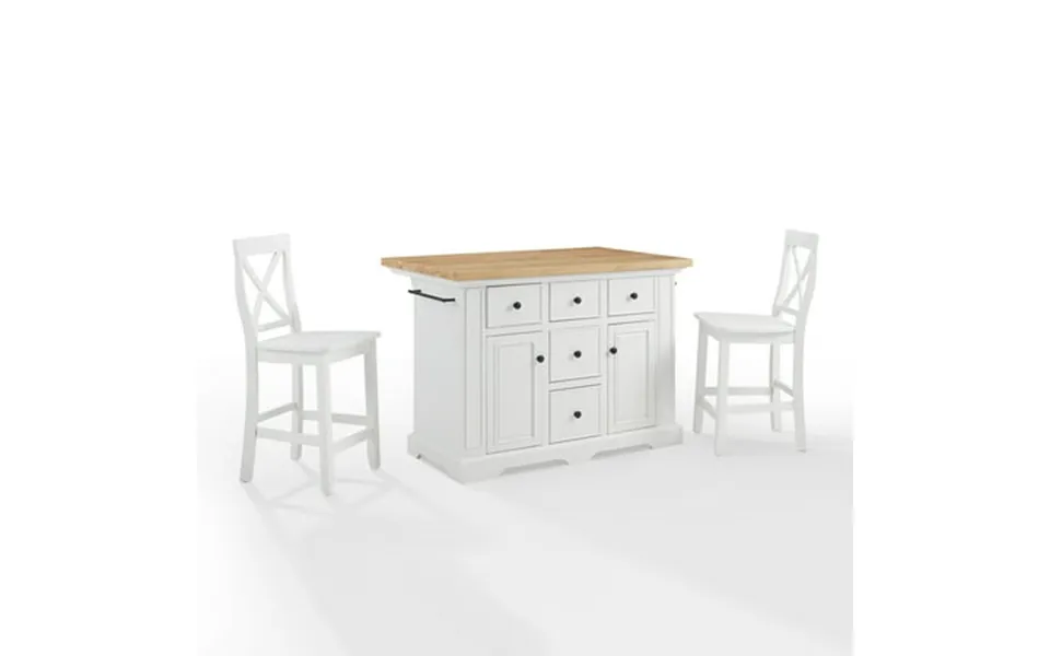 The julia 3pc kitchen island set offers space for food prep entertaining and dining all in one high-end package. The spacious countertop extends past the...show more