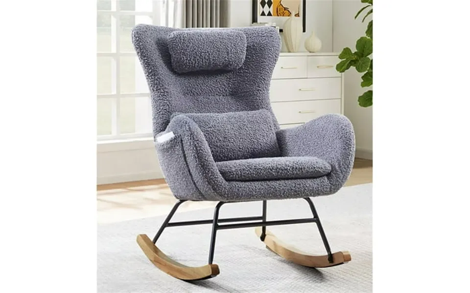 Description: this modern rocking chair is covered with breathable and soft teddy fabric and filled with soft sponge to create the ultimate seating comfort. The seat with roomy depth and width is firm and well-cushioned which allows the barrel chair to provide you with ample seating space while optimizing comfort. Specification: product name: rocking chair nursery modern rocking chair with high backrest filler: polyurethane foam main color: gray pink beige main material: fabric product dimensions assembled length in. : 33.07 Assembled width in. : 26.77 Assembled height in. : 36.61 Weight lbs. : 23.76 Package size length in. : 28.74 Width in. : 27.55 Height in. : 12.79 Weight lbs. : 28.60 Product features 1. The swing range does not exceed 30 which is designed based on the concept of the most comfortable rocking rhythm of the human body. 2. These rocking chair are made of high-quality cashmere fabric. 3. The frame and legs of the chair are made of solid wood and high quality metal to ensure a safe structure. 4. This rocking chair has a built-in high-density sponge which is more elastic wrapping and not easily deformed providing strong support for your entire body. 5. There is a adjustable headrrest cushion can support your head or neck when you finish working. 6. It can support your lumbar when you take care of your baby or when you sit in the chair.