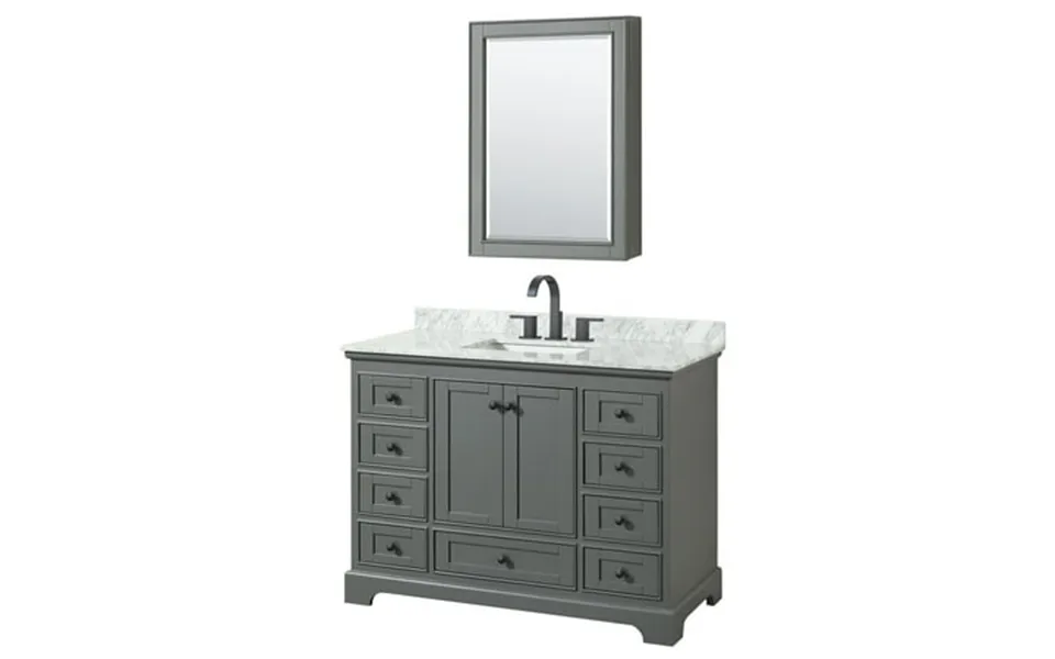 A contemporary classic if ever there was one the gorgeous deborah vanity series is truly a winning combination of authentic english charm warm practicality and a touch of the modern. The answer to your bathroom remodel quest is made simple with the deborah collection which is crafted for uncompromising function as well as form. Add this beautifully-designed piece to your bathroom today. Included components: covered under wyndham collection s 2 year limited warranty marble vanity top with single basin porcelain sink and matching backsplash faucet is not included and must be purchased separately 33 h x 24 w x 6.5 D medicine cabinet cabinet features: constructed of environmentally friendly zero emissions plywood engineered to prevent warping and last a lifetime multi-stage wood preparation sanding and finishing process highly water-resistant low v.O.C. Sealed finish beautiful transitional styling that complements any bathroom practical free standing design