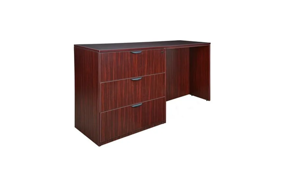 Legacy stand up side to side lateral file desk- mahogany sit or stand in the comfort of legacy stand up modular workstations- perfect for a mailroom break area or any collaborative environment. Fast paced environments beg for productivity and with standing storage units everything is within arms length. Stand up group stations offer a large surface perfect for blueprints for common work space. This stand up set includes two stand up lateral files placed side-to-side. Each lateral file includes three large locking full suspension file drawers that accept both letter and legal filing. Finished in a classic mahogany laminate stand up components coordinate with other legacy furniture which makes customizing easy. The legacy collection is constructed of a 1-inch thick thermal fused melamine laminate with a 3-millimeter commercial grade matching pvc edge. Laminates are scratch stain and scald resistant. Legacy casegoods are backed by a 10-year limited manufacturer s warranty. Legacy stand up set with 1 lateral file and 1 desk placed side-to-side reversible- components can be placed in any order within the grouping 3 large locking full suspension file drawers that accept both letter and legal filing alleviate stress from sitting and get away from the standard desk by working at a stand up desk classic mahogany laminate is scratch stain and scald resistant and is backed by a 10-year limited manufacturer s warranty