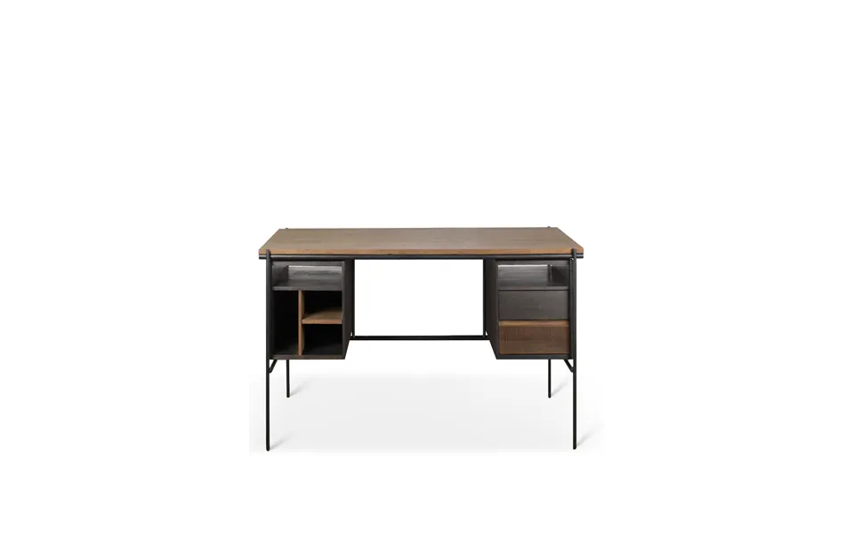 A masterpiece that caters to your taste and needs, the teak desk with drawers by ethnicraft offers a clean and minimalistic design that allows you to immerse yourself in your tasks without distraction. This oscar desk comes with two hand-carved drawers for the organization enthusiasts. Crafted from natural solid teak and supported by black metal legs, it radiates natural elegance with a modern touch. Elevate your workspace and increase your productivity with this exquisite desk. W79 x d36 x h30 in w201 x d91 x h76 cm teak wood metal legs 2 drawers with hand-carved fronts for cable management, check our power circle. 2-Year warranty & exclusive belgium design download technical line drawing download assembly sheet download care instructions
