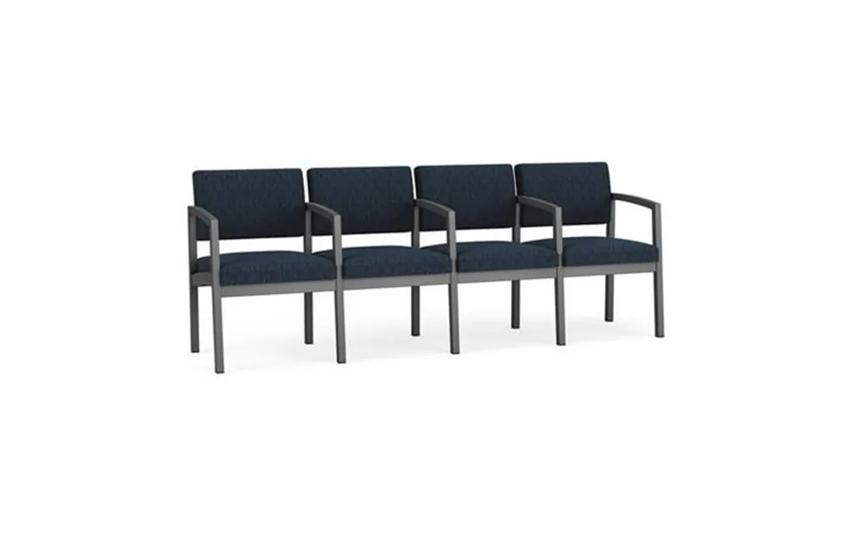 The lenox steel 4 seater with its graceful transitional styling gently sloped arm design and upholstered seat and back cushions will give your space a light airy look. Features include sturdy steel construction durable powder coat finish and a comfortable matrex seat support system. Available in stain-resistant solid fabric alluring designer fabric and easy-clean heavy-duty vinyl and polyurethane upholstery options. 300 Lb weight capacity per seat. Features: material: steel durable 100% polyester teflon-coated designer fabric finish: charcoal adler midnight sky blue sturdy steel frames with upholstered seats and backs durable powder coat paint finished steel frame cleans easily with a damp cloth matrex seat support system for long-life sitting comfort generous space between seats and backs for easy cleaning available in stain-resistant solid fabric alluring designer fabric and easy-clean heavy-duty vinyl and polyurethane upholstery seats feature environmentally friendly durable and comfortable 1.8 Density soy based foam easy to assemble with lesro s unique interlocking hardware. Only tool required is a rubber mallet specifications: product dimensions: 32 h x 85.5 W x 24.5 D product weight: 75 lbs weight capacity: 300 lbs seat height: 18.5 Arm height: 25.5