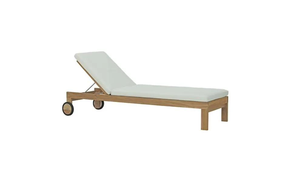Refresh your outdoor décor with the upland teak wood outdoor patio furniture collection. Boldly designed with eye-catching appeal upland patio chaise lounge chair is made of solid teak wood and solidly build construction. The perfect choice for balconies backyards patios gazebos poolside or garden spaces choose from matching armchair sofa loveseat ottoman side table coffee table and chaise lounge selections with this multi-purpose modern teak set. Known for its ability to withstand extreme weather conditions teak is the wood selection of choice for long-lasting outdoor furnishings. Assembly required. This installment of the upland teak wood outdoor patio furniture series and a patio chaise lounge. Features: materials: solid teak wood finish: natural white height adjustable lounger water and uv resistant cushions mobile wheels on back legs machine washable covers specifications: product dimensions: 15.5-38.5 H x 28.5 W x 82 d product weight: 64 lbs