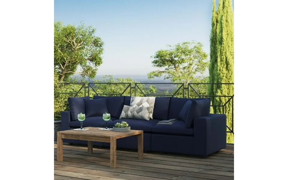 A haven for cozy relaxation right in your own backyard commix features plush comfort a clean-lined design and a spacious profile that makes an attractive statement on the porch patio or by the poolside. Made for sprawling out in the sun or curling up with a good book this patio sofa features generously padded cushions covered in water-repellent and uv-resistant covers making them ideal for your outdoor space. This outdoor three-seater sofa features an all-weather construction with a powder-coated aluminum frame and non-marking foot caps to protect flooring surfaces. Beckoning guests to sit and stay a while the commix outdoor patio collection is perfect for al fresco entertaining or lounging amidst warm weather. Each seat weight capacity: 300 lbs.