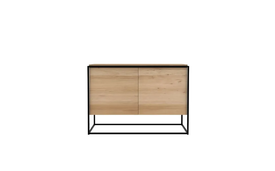 With its minimalist aesthetics, the 2-door wooden oak sideboard by ethnicraft boasts two sleek push-open doors, providing easy access to its spacious interior storage. It showcases the natural beauty and durability of solid oak with hardwax oil finish. To accentuate its sophisticated appeal, this monolit sideboard features a black metal frame that adds a touch of industrial flair. Whether gracing a dining area, a living room, or a hallway, it's a must-have for those seeking to infuse their home with style and practicality. W44 x d18 x h31in weight 104lbs w112 x d46 x h79cm weight 47kgs 100% solid wood oiled finish metal frame 2-year warranty & exclusive belgium design download technical line drawing download care instructions