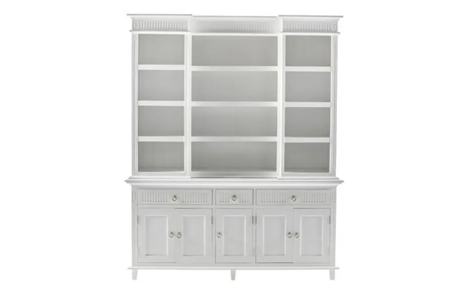 Introducing our classic white hutch unit the perfect addition to any kitchen dining or living space. This piece is carefully crafted assembled and hand finished by skilled artisans ensuring a high level of attention to detail and quality. The hutch unit features a solid plantation mahogany frame that provides both durability and style. The silver chrome hardware adds a modern touch to the classic white finish making this piece a versatile addition to any decor. This hutch unit provides ample storage space in the form of shelves drawers and doors making it the perfect solution for organizing your household essentials. Features curated material selection embracing natural materials individual craftsmanship minimal assembly requiredspecifications color: white materials: mahogany medium-density fibreboard mdf brass hardware with silver chrome plating dimension: 86.61 H x 70.87 W x 19.69 D in. Country of origin: indonesia weight: 227.63 Lbs