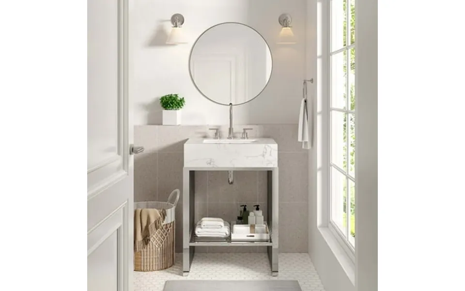 Introduce stark modernity to your bathroom space with the straight lines polished detail and angular profile of the gridiron 24 bathroom vanity. Crafted with durable...show more