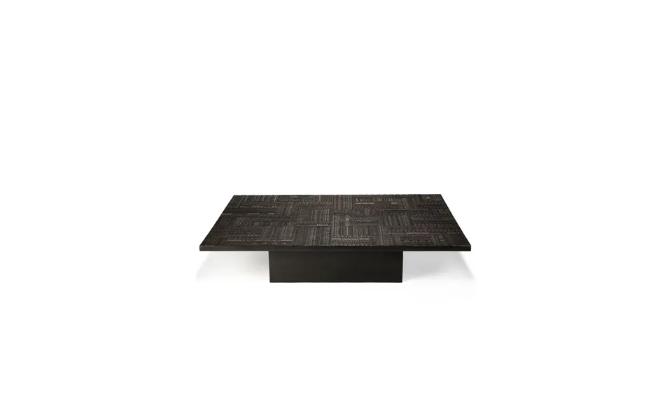 The carved teak coffee table offers a timeless centerpiece of minimalistic silhouette with a distinct character. This rectangular tabwa coffee table is embellished with intricate patterns that have been carved by ethnicraft's skilled artisans. Inspired by the tabwa culture from central africa,known for their love of linear geometric designs, this collection encapsulates culture and craftsmanship in harmony. This table features a geometrical base that adds to its contemporary appeal. W67 x d48 x h15 in w170 x d122 x h38 cm veneer table top varnished finish oak veneer body 2-year warranty & exclusive belgium design download technical line drawing download care instructions