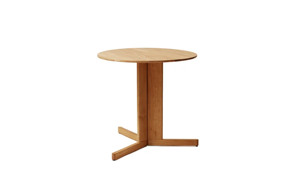 A center point of free-floating solid oak elements holds the round table and creates a contradiction of lightness and a substantially dense round table. The...show more