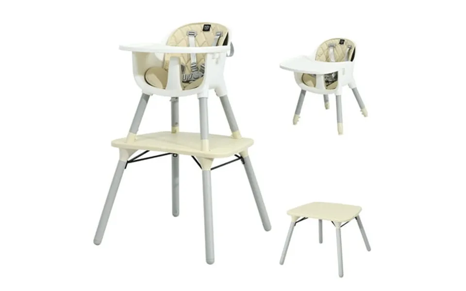 Our baby highchair will bring you great convenience when taking care of your baby and your baby will be very comfortable sitting in our chair. As we all know that babies are active thus a highchair should be able to fit their needs. This highchair can perfectly do it. With 4-in-1 convertible design and a removable tray you don t need to worry about what if your baby needs more spaces for different activities. Moreover equipped with 5-point harness our highchair can keep your baby in safe condition. This chair also uses easy-to-clean materials allowing you to easily maintain it for a long time use. You will certainly feel the convenience it brings you when staying with your baby. Feature 4-in-1 convertible design better meeting your baby s different needs adjustable tray with two grades suitable for babies of different ages and needs equipped with 5-point harness keeping your baby in safe condition removable pu seat cushion is easy to detach and clean for a long time use pyramid structure ensuring the overall stability when in use lightweight design convenient for easy carrying and transportation suitable for living room bedroom kitchen etc. Especially for narrow spaces easy to assemble with its buckle design between chair and table specification color: beige material: pu pp metal overall dimension baby highchair : 23 x 24 x 37 l x w x h overall dimension children chair : 15.5 X 14.5 X 20 l x w x h dimension of table: 23 x 24 x 17 weight capacity of chair: 33lbs weight cap...