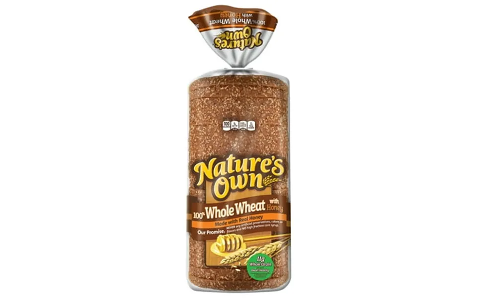Share all-around goodness with your family when you bring home nature s own 100% whole wheat bread with honey. With the sweetness of real honey and the goodness of whole wheat these shelf-stable whole grain bread slices combine two of nature s own s best sellers. Whether you re crafting delicious toast or your kid s favorite sandwich this whole wheat bread tastes great and has 11 grams of whole grain per slice and 3 grams of fiber per two slices. Plus this whole grain baked bread loaf is a cholesterol free food and is made with no artificial preservatives colors or flavors and no high fructose corn syrup. Pile on the goodness and bring everyone together with nature s own breads buns and rolls. At nature s own we believe that anything worth doing is worth doing right. It s a standard applied to each and every product that makes its way out of nature s own bakeries. Choose from a variety of bread flavors and styles to fit whatever sandwich you have in mind. As america s 1 selling loaf bread brand* nature s own maintains the freshness and softness that makes it a family favorite bread with no artificial preservatives colors or flavors and no high fructose corn syrup. Goodness is in our nature. *Source: circana syndicated data for the total u.S. Latest 52 weeks ending 8.11.24