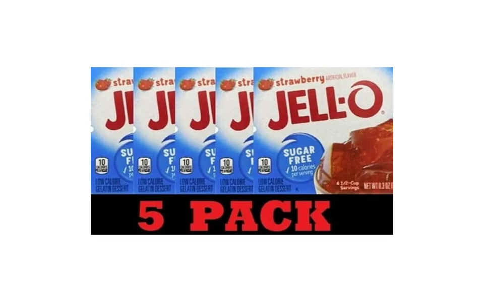 0.3 Oz box of jell-o sugar free strawberry instant gelatin mix jell-o sugar free strawberry instant gelatin mix is a tasty sugar-free dessert that s easy to make fat free per serving gelatin makes a good snack option this low calorie gelatin contains 10 calories per serving packaged in a sealed pouch each box makes four 1 2 cup servings for sharing makes for a delicious dessert