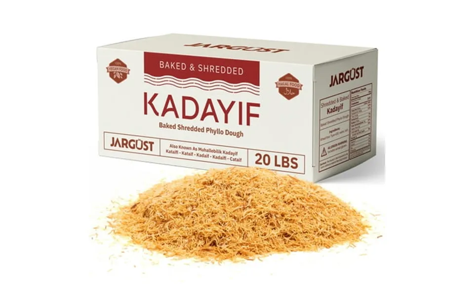 Baked shedded kataifi origin: bulk baked shredded kataifi is a traditional pastry dough originating from the middle east and mediterranean regions commonly used to create delicate and crispy pastries. Ingredients: 100% shredded phyllo dough that has been baked to perfection ready to use in a variety of sweet or savory recipes. Taste and texture: the kataifi dough has a mild flavor with a light crispy and airy texture that becomes golden and crunchy when baked providing a satisfying crunch with every bite. Uses: this 20lb bulk quantity of baked and shredded kataifi is perfect for large-scale food preparation. It can be used to make individual servings of traditional desserts like kataifi rolls or nests often filled with nuts cream or fruit and sweetened with syrup or honey. The dough can also be incorporated into savory dishes or used as a topping for casseroles and pastries. Perfect ingredient for dubai chocolate pistachio bar. Substitutes: phyllo dough or shredded filo pastry can be used as an alternative though they will offer a different texture and experience than kataifis fine shredded strands. Fun fact: bulk baked shredded kataifi offers convenience for businesses or home cooks preparing large quantities of traditional desserts ensuring a consistent texture and taste.