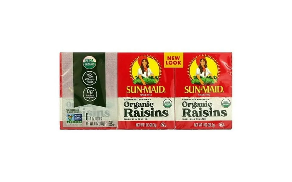 Sun-maid organic california sun-dried raisins 6 boxes 1 oz 28.3 G each