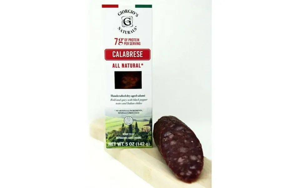 This salami is made with pure beef and has a medium heat profile achieved by blending white pepper black pepper and calabrian chili. It boasts a creamy and buttery texture and has a tangy taste. A delightful mixture of flavors makes it a unique and enjoyable experience. Our salami is dry aged a minimum of 30 days. Are all natural and made avoiding the use nitrites and nitrates msg dairy and gluten. All of the spices for the production of our salami are imported from italy. Giorgio s naturals was founded to fuse the time-honored tradition of old-world salami making with a modern approach. Our roots are deeply embedded in the italian craft of salami making and the european art of curing meats. All natural without the use of nitrites and nitrates msg dairy gluten ingredients: pork salt spices natural flavoring cultured celery powder dextrose maltodextrin yeast extract potassium chloride salt starter culture sea salt. Product is stuffed in natural or collagen casing. Specialty: gluten free flavor salami specialty: gluten free flavor: beef.