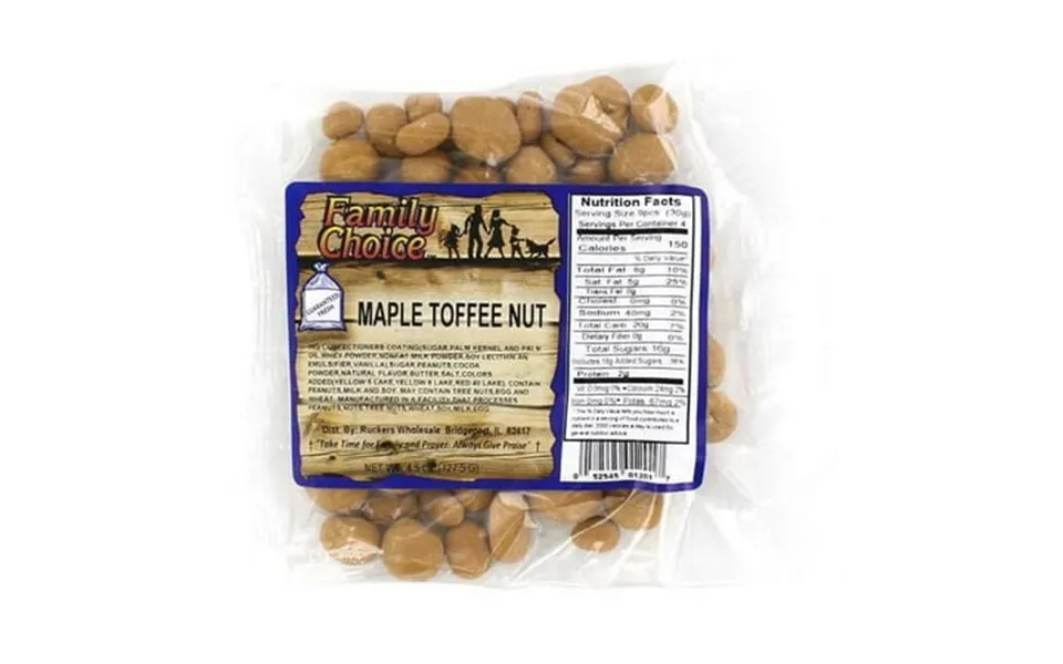 Gourmet food is a term commonly associated with cuisine of high quality or presentation. Indulge your taste buds with some luxurious gourmet food. Our products are of exceptional quality prepared accurately and skillfully using careful and artistic presentation. Get access to a wide assortment of gourmet treats and treat yourself to the finest most sumptuous and healthy cuisines around the world.Features 4.5 Oz maple toffee pack of 12specifications capacity: 4.5 Oz flavor: maple product type: toffee brand name: container size: 4.5 Country of origin: united states weight: 4.4 Lbs
