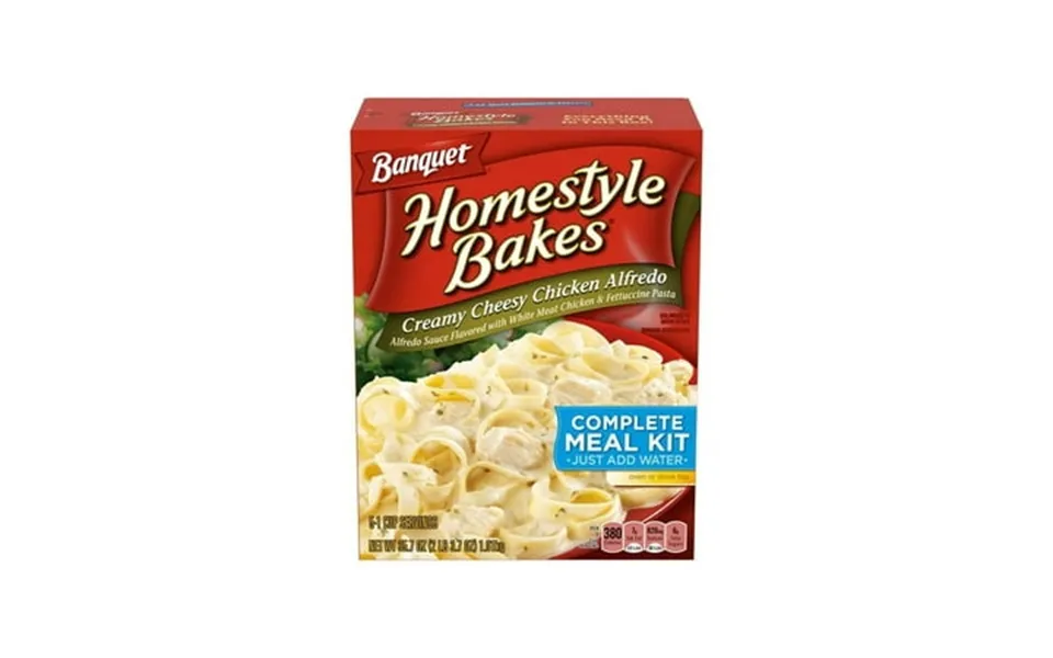 Add more homestyle flavor stir in cooked chopped broccoli peas or mixed vegetables after baking.Sprinkle with grated parmesan cheese.Inside this box:2 cans creamy alfredo sauce flavored with white meat chicken.1 Pouch fettuccine pasta.All you need to add:1 1 4 cups water.For food safety and quality:ovens stove top burners and skillets may vary. Adjust cooking times as needed.Product must be cooked thoroughly. Read and follow these cooking directions.Refrigerate or discard any unused portion.Oven preparation:1. Preheat oven to 425 degrees f.Stir together both cans of sauce and 1 1 4 cups water in 8 x 8 baking dish.2. Stir in pasta until well coated.3. Cover with foil.Bake 40-45 minutes or until pasta is tender.4. Carefully uncover. Stir until well blended.Let stand 5 minutes sauce will thicken.Stove top preparation:1. Stir together both cans of sauce and 1 1 4 cups water in 10-inch skillet.2. Stir in pasta until well coated.Heat to boiling.3. Reduce heat.Cover and simmer about 20 minutes or until pasta is tender stirring occasionally.4. Stir until well blended.Let stand 5 minutes sauce will thicken.Alternate preparation:baking dish size: 11x7-inch baking dish