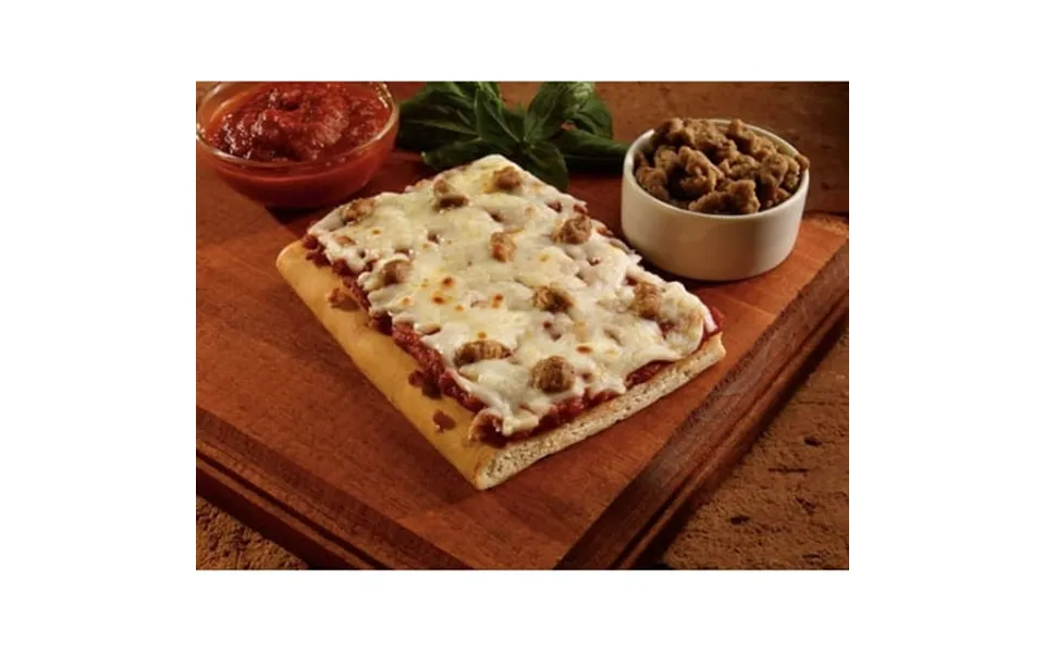 Traditional 4x6 school pizza provides 2 equivalent grains and 2 meat meat alternates 1 8 cup veg. Made with 51% whole grain.