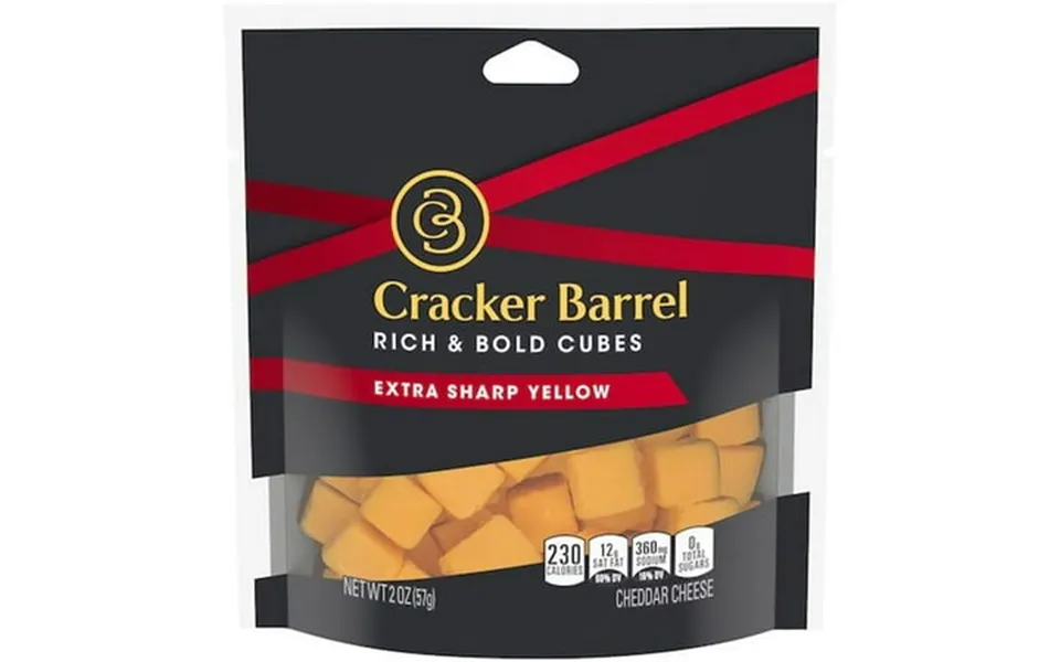 Features: cracker barrel extra sharp yellow cheddar cheese cubes are discerningly selected and prepared to bring a rich and bold taste to snacking. These cheese cubes make for an irresistible snack you and your guests will love. Containing 120 calories per serving these snack size cubes are a delicious choice that helps to satisfy your hunger. Try matching this 2 oz. Bag of cheese with a glass of syrah and dark chocolate. Whether you are entertaining a room full of friends or wanting a cheese snack to go these cheddar cheese cubes are great for a quick snack. Cracker barrel cheese cubes pair well with deli meat and crackers for a tasty mini sandwich or simply enjoy by itself. Keep the easy-tear resealable bag in the fridge to maintain freshness.