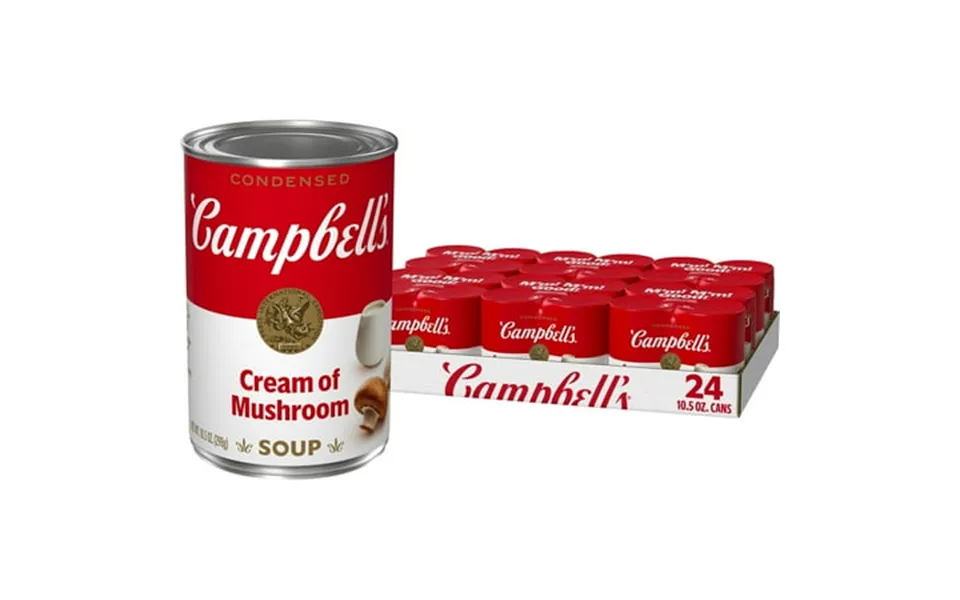 Add rich creamy flavor to your favorite dishes with campbell s condensed cream of mushroom soup. This vegetarian soup is crafted with mushrooms garlic and farm-fresh cream to provide a deliciously smooth foundation to any recipe. Use it as the hero ingredient in recipes like green bean casserole and swedish meatballs or substitute it for roux or bechamel as a sauce starter. Campbell’s convenient canned soup is a year-round pantry staple and a must-have for creating something quick and easy. It s also delicious on its own topped with fresh herbs or a drizzle of olive oil or enjoyed with a sandwich or salad. Simply mix the condensed soup with 1 can of water or milk and microwave on high for 3 to 3.5 Minutes in a covered microwave-safe bowl or heat in a pot on the stove stirring occasionally. Each 10.5 Oz recyclable can contains about 2.5 Servings of microwave soup and features a non-bpa lining. From cream of mushroom to chicken noodle and everything in between campbell s makes delicious soups in flavors your family knows and loves with quality farm-grown ingredients in every can. M m m m good
