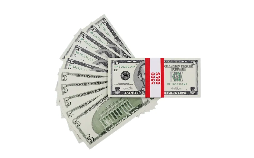 Our 500 full print 2000 series prop money stack is comprised of one hundred 5 double-sided bills, offering unmatched quality and detail. Each bill is...show more