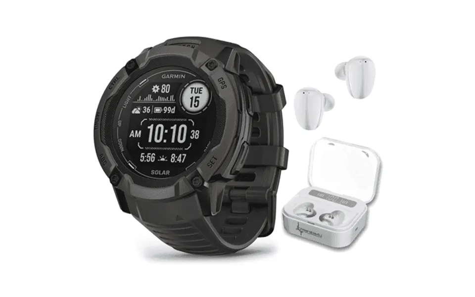Whatever you do own it with instinct 2x solar. This bold rugged gps smartwatch is tough enough to keep up with you and unique enough to fit your style. Plus solar charging gives you unlimited battery life in smartwatch mode when exposed to 3 hours of direct sunlight 50 000 lux per day. When the sun sets use the built-in led flashlight to keep going and stay visible. Do more of what you love with preloaded activity profiles for running biking swimming strength training and more. Count on multi-band signal reception technology to provide more accurate positioning and multi-gnss support to provide more reliable service in challenging environments. Check your wrist to stay connected with smart notifications garmin pay contactless payments and connect iq app integration when paired with your compatible smartphone . Understand your body better with all-day health monitoring for energy levels stress sleep pulse ox heart rate and more this is not a medical device and data presented is intended to be a close estimation of metrics tracked. Pulse ox not available in all countries .