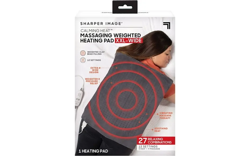 Introducing the world’s first weighted heating pad as sharper image calming heat xxl-wide by calming comfort. Calming heat provides the soothing heat therapy of a heating pad with the added benefit of weight- 5 pounds. The secret is the heat absorbing clay beads that retain and evenly distribute the soothing heat. Take relaxation to the next level with calming heat by using it to help relax your muscle aches soothe your stiff joints even helping to relieve menstrual cramps. Calming heat with vibration has an optional massage setting that delivers a gentle massage to your affected areas enhancing your heat therapy experience and helping to soothe your aches and pains. Calming heat’s large size allows it to be used on virtually any part of your body from your neck and shoulders to your back and legs.