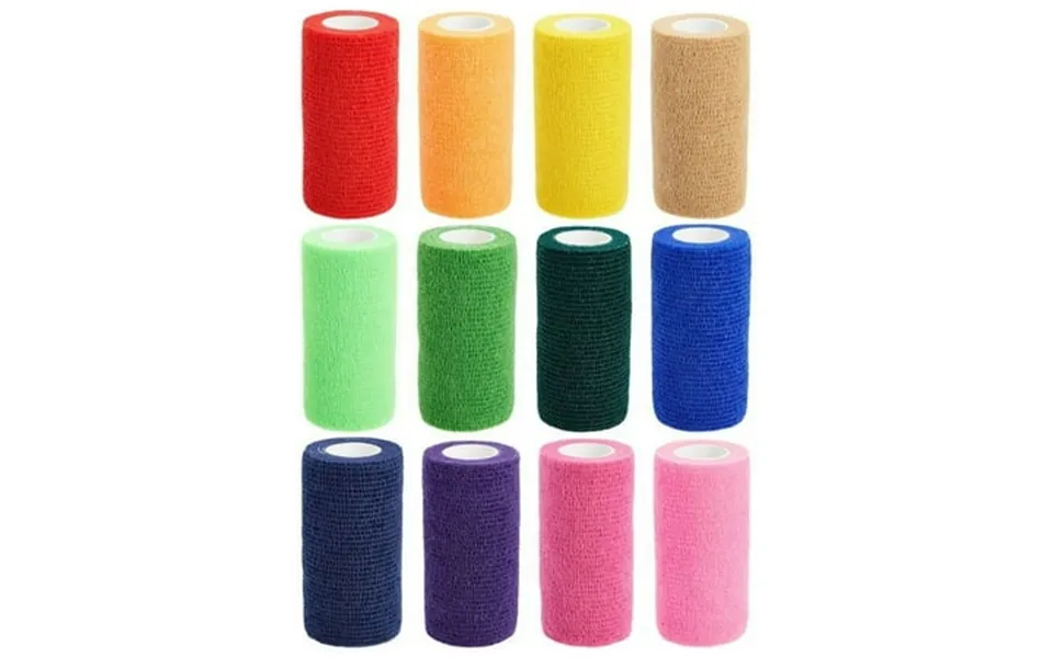Product details item description this set of 12 self-adherent cohesive wrap bandages is designed for maximum convenience. Tear them effortlessly without the need for scissors allowing you to take just an inch or multiple yards as required. The athletic pre-wrap tape combines strength with gentleness as these wraps are made from non-woven material ensuring they do not stick to your skin. The bandage wrap is highly stretchable and flexible conforming comfortably to different body shapes and contours as well as animal limbs. The cohesive material provides a strong and durable hold ensuring the bandage wrap remains in place even during movement. Suitable for a wide range of applications including first aid sports injuries and veterinary care for animals. This pack includes 12 vibrant self-adhesive wrap rolls in 12 assorted colors
