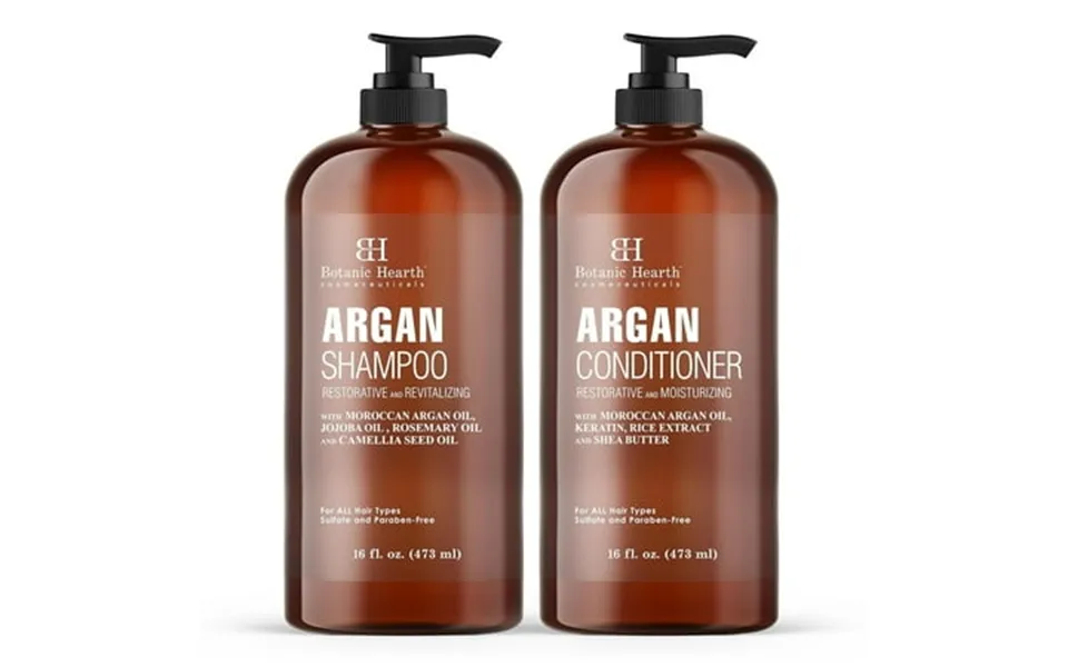 Botanic hearth s long and thick hair bundle including argan oil shampoo conditioner set and tea tree hair serum argan shampoo conditioner set made with moroccan argan oil is a nourishing hair cleanser and conditioner set enriched with a blend of hydrating and volumizing ingredients to promotes long thick healthy hair argan oil has high content of antioxidants essential fatty acids and vitamin e this shampoo and conditioner set will leave your hair feeling clean strong and deeply nourished sulfate free and paraben free shampoo and conditioner use regularly to leave hair feeling clean soft silky and manageable tree hair serum the ultra smoothing serum smooths frizzy and flyaway hair lightweight formula nourishes and controls dry ends infused with a blend of natural oils derived from sunflower tea tree peppermint and vitamin e to protect hair from humidity